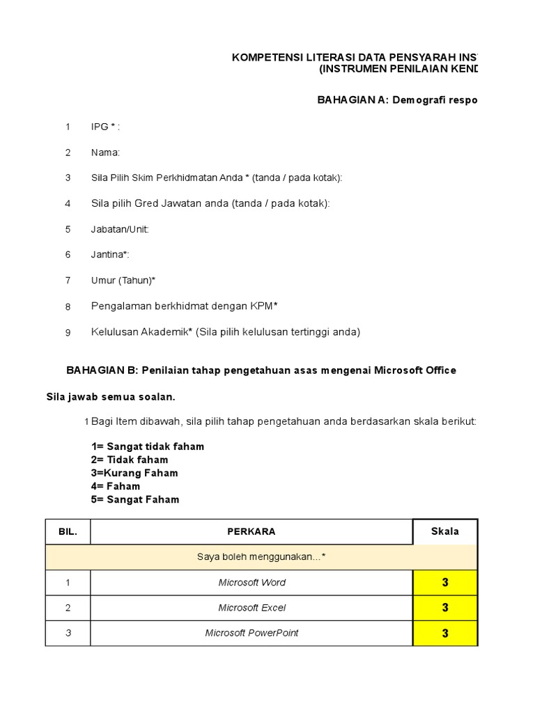 Borang Soal Selidik Penilaian Kendiri Pdf